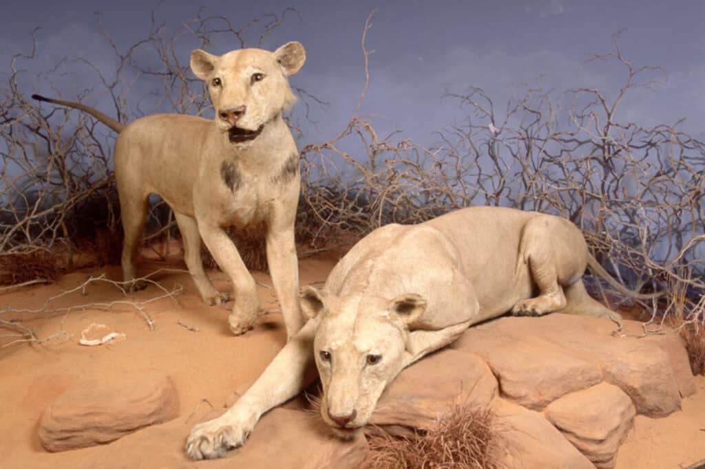 Die Tsavo-Menschenfresser, ein Löwenpaar, waren in den späten 1890er Jahren in Kenia für den Tod zahlreicher Eisenbahnarbeiter verantwortlich.