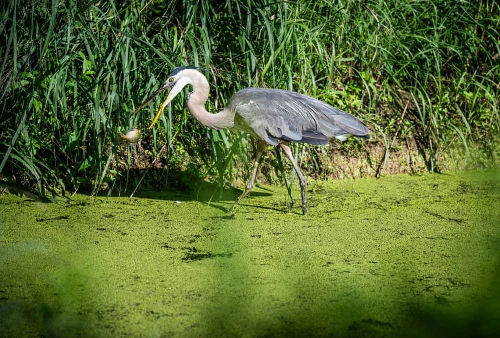 Die Anwesenheit des großen blauen Reihers erinnert an die Ruhe und Schönheit der vielfältigen aquatischen Ökosysteme in Texas.