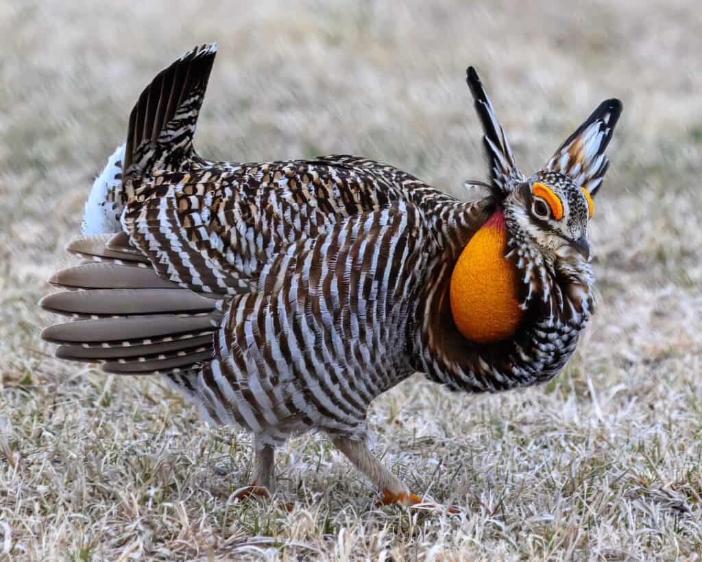 Das Großpräriehuhn, das in den Graslandschaften Nordamerikas beheimatet ist, ist für seinen „dröhnenden“ Tanz bekannt.