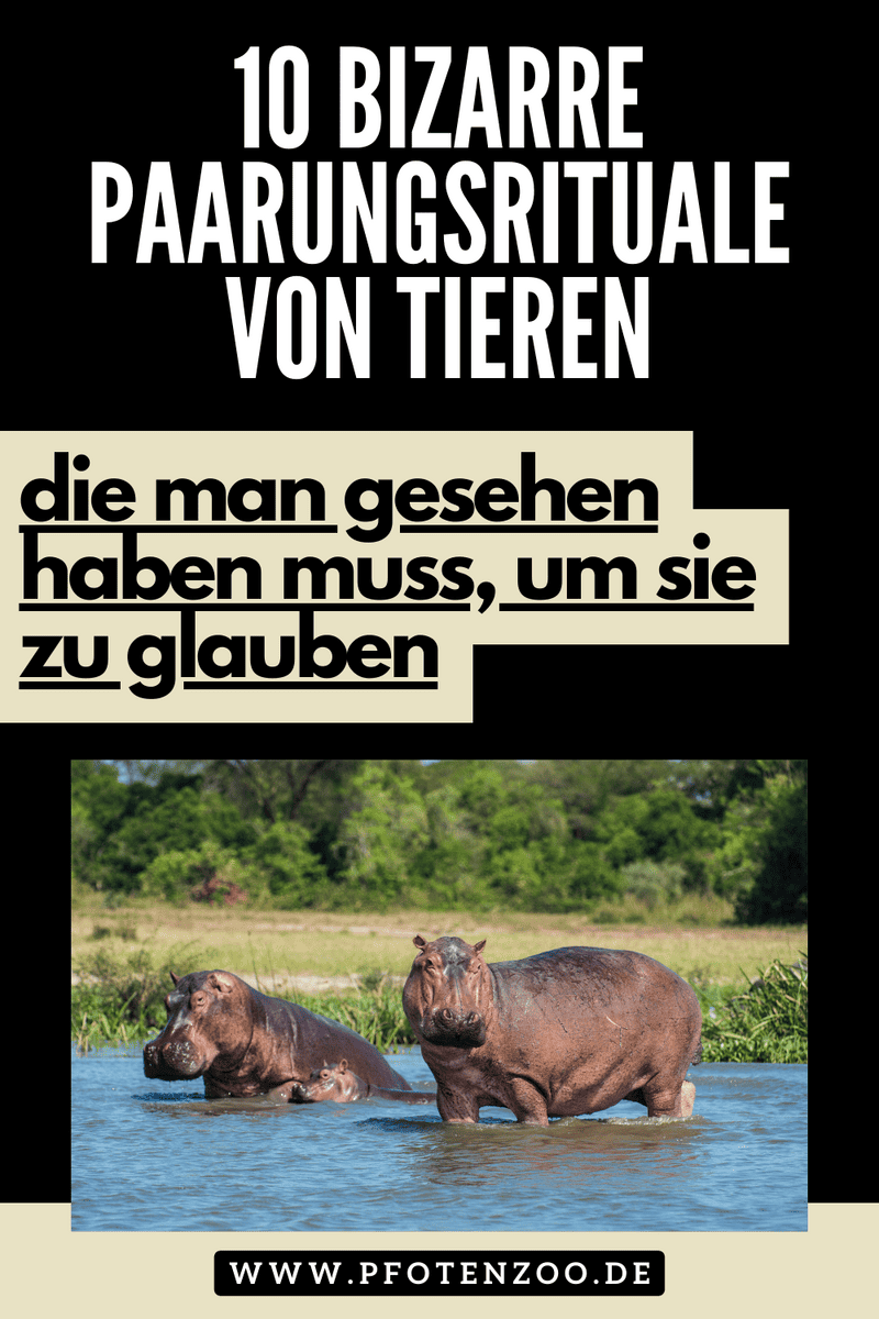 Das Nilpferd, ein riesiges Tier, das in Afrika vorkommt, hat eines der seltsamsten Paarungsrituale. Um die Aufmerksamkeit eines Weibchens auf sich zu ziehen, schleudert das Männchen mit seinem Schwanz seinen Kot in alle Richtungen und erzeugt so eine „Kotdusche“.