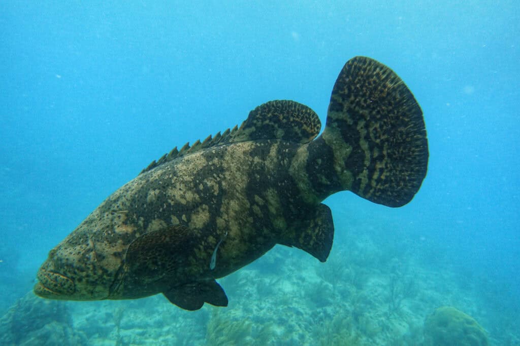 Stellen Sie sich den mächtigen Atlantischen Goliath-Zackenbarsch vor, der für seine Größe und Stärke bekannt ist. Diese Zackenbarsche können bis zu einem Meter lang werden und bis zu 800 Pfund wiegen.