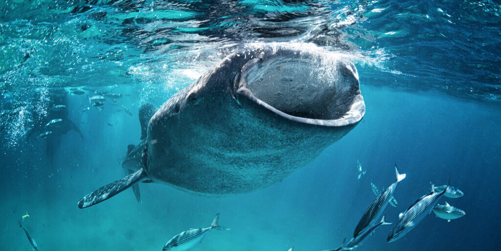 Trotz ihrer enormen Größe sind Walhaie Filtrierer, die sich hauptsächlich von Plankton und kleinen Fischen ernähren.