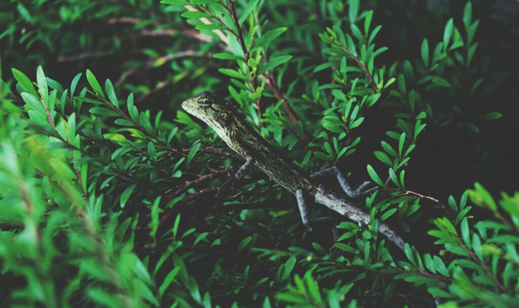 Die Grüne Anolis beispielsweise kann je nach Umgebung und Stresslevel von leuchtend grün zu braun wechseln.