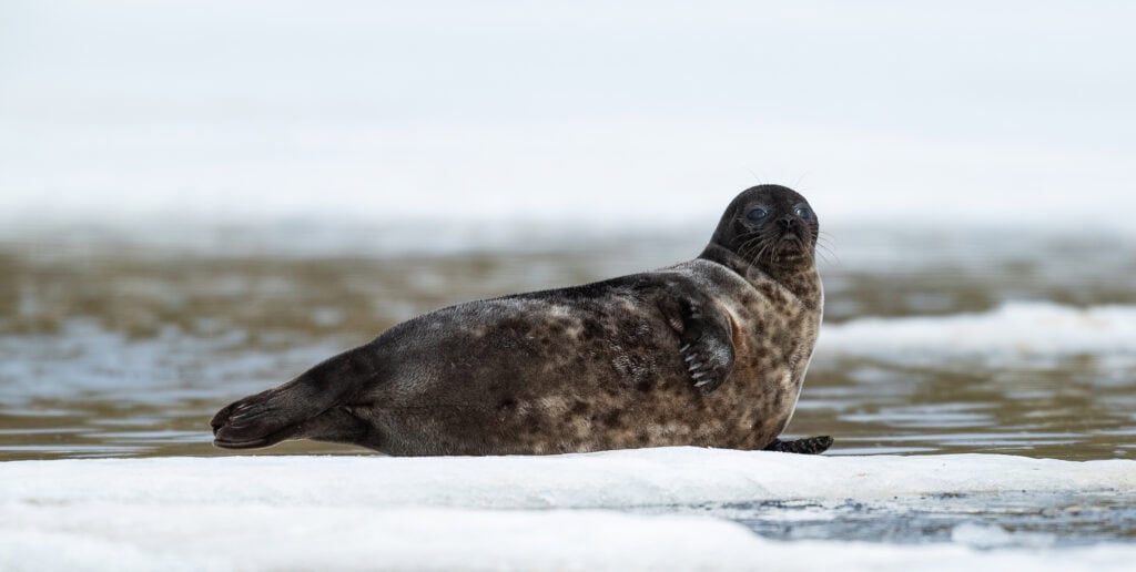 Ringelrobben gehören zu den am häufigsten vorkommenden Robben in der Arktis und sind leicht an den charakteristischen Ringmustern auf ihrem Fell zu erkennen.