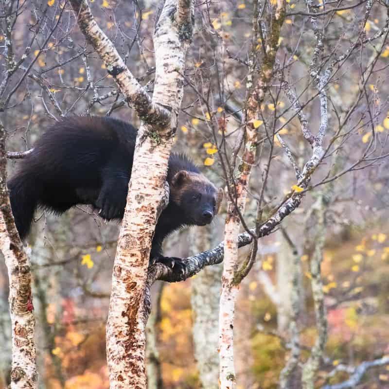 Trotz ihres gedrungenen Körperbaus sind Vielfraße erstaunlich geschickte Kletterer.