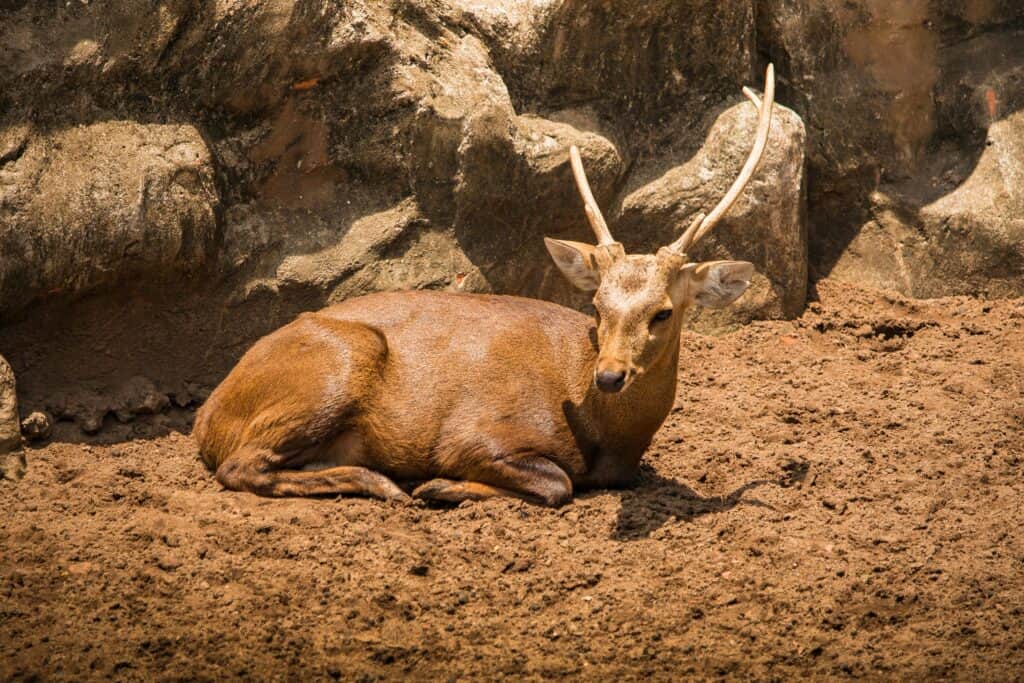 Mit einem Gewicht von 40 bis 120 Kilogramm haben sich diese mittelgroßen Hirsche an die rauen Bedingungen des Parks angepasst, wo Wasser knapp und der Raubdruck hoch ist.