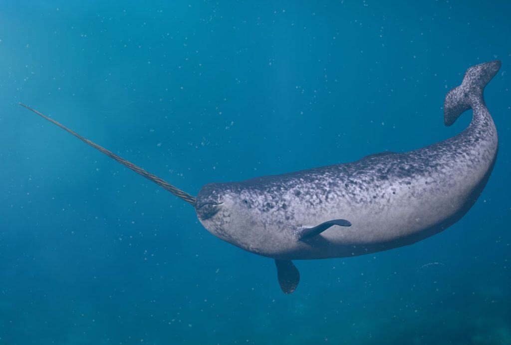 Der Narwal ist als Einhorn des Meeres bekannt und durchstreift die Arktis. Sein charakteristisches Merkmal ist ein langer, spiralförmiger Stoßzahn, der bis zu drei Meter lang werden kann.