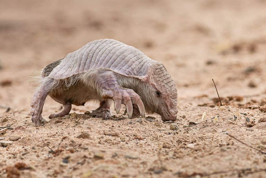 Das kleinste Gürteltier seiner Art bewohnt die sandigen Ebenen Argentiniens. Mit seinem rosafarbenen Panzer und den zarten Krallen gräbt es sich schnell ein und verbringt einen Großteil seines Lebens unter der Erde.