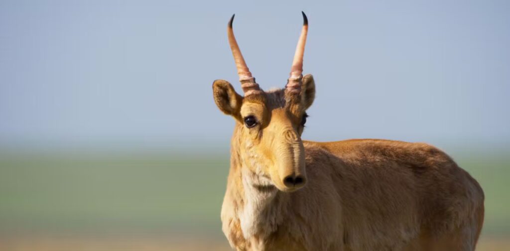 Mit ihrer nach unten gebogenen Nase und der bauchigen Schnauze sieht die Saiga-Antilope eher aus wie eine Kreatur aus einem Fantasy-Film als ein Säugetier, das einst die eurasischen Steppen durchstreifte.