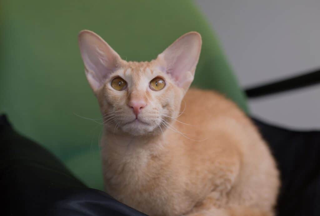 Mit ihrem schlanken Körper und den großen, ausdrucksstarken Ohren hat die Orientalisch Kurzhaar eine geisterhafte Eleganz.