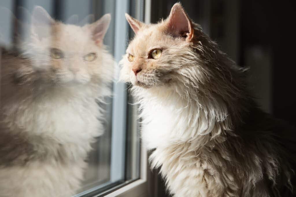 Die Selkirk Rex sieht mit ihrem gelockten Fell und dem runden Gesicht aus wie eine skurrile Kreatur aus einem Fantasy-Roman.