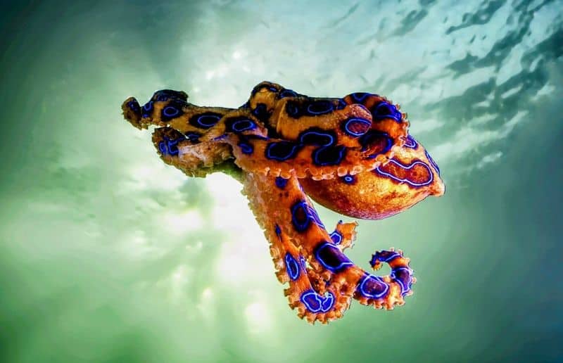 Der Blauring-Oktopus, der in den Gezeitentümpeln des Pazifischen Ozeans vorkommt, ist klein, aber unglaublich giftig.
