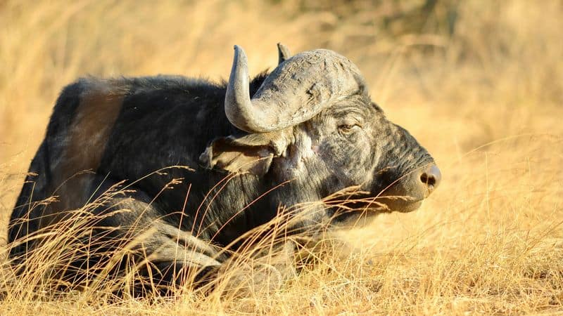 Der Kapbüffel gilt als eines der gefährlichsten Tiere Afrikas. Er ist unberechenbar und kann bei Bedrohung äußerst aggressiv sein.