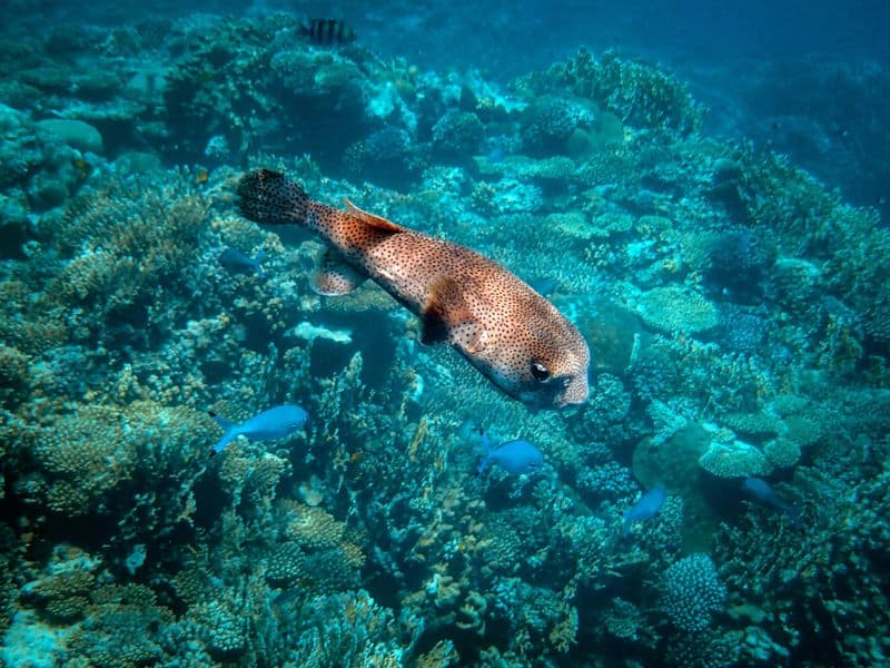 Kugelfische sehen zwar harmlos aus, können aber durch ihr Tetrodotoxin, ein starkes Gift, tödlich sein.