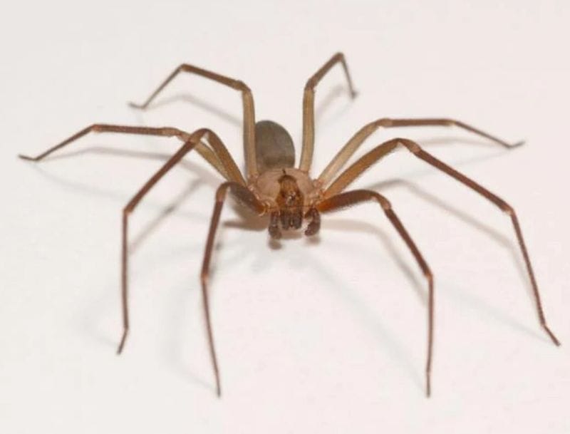 Die Braune Einsiedlerspinne ist eine hochgiftige Spinne, die an dem geigenförmigen Fleck auf ihrem Rücken zu erkennen ist.
