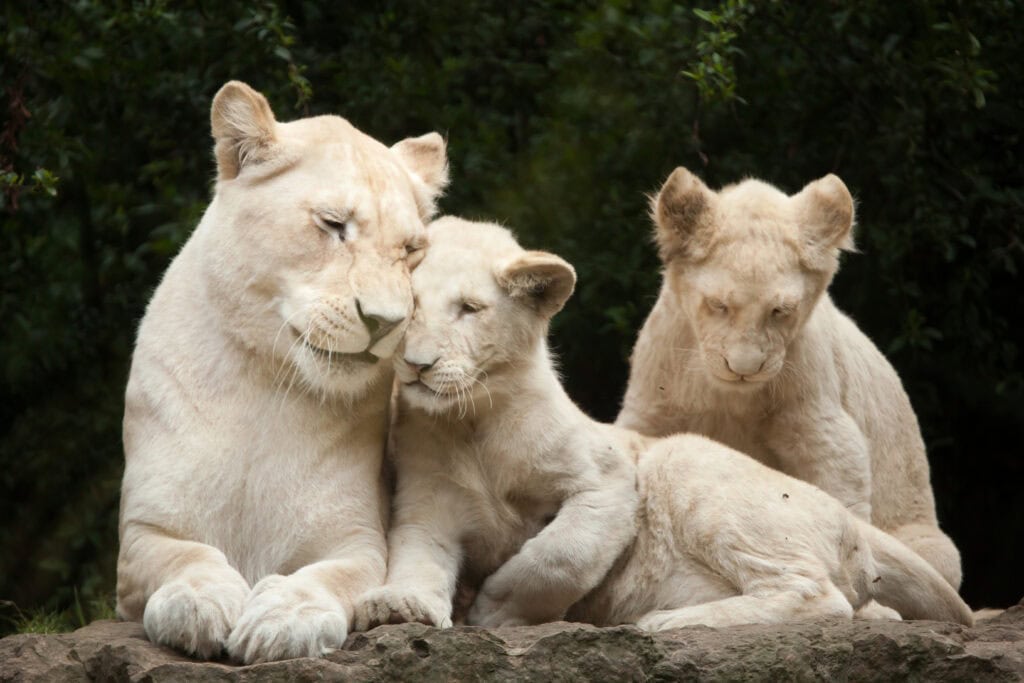 Diese außergewöhnlich seltenen und teuren Tiere aus dem Timbavati-Gebiet in Südafrika werden wegen ihres atemberaubenden Aussehens, ihres cremefarbenen Fells und ihrer auffallend blauen oder goldenen Augen verehrt.