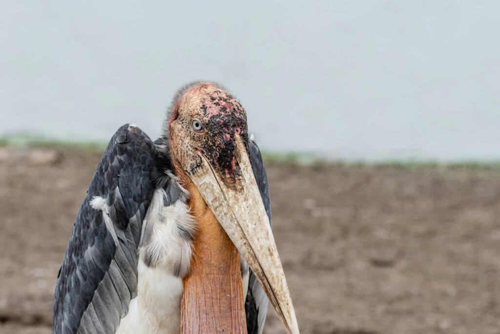 Der Marabu, der oft als Leichenbestatter in einem schäbigen Mantel beschrieben wird, vervollständigt mit seinem kahlen, schorfigen Kopf, seinem massiven Schnabel, seinem markanten Kehlsack und seinem steifen Auftreten die Liste der „Ugly 5“.