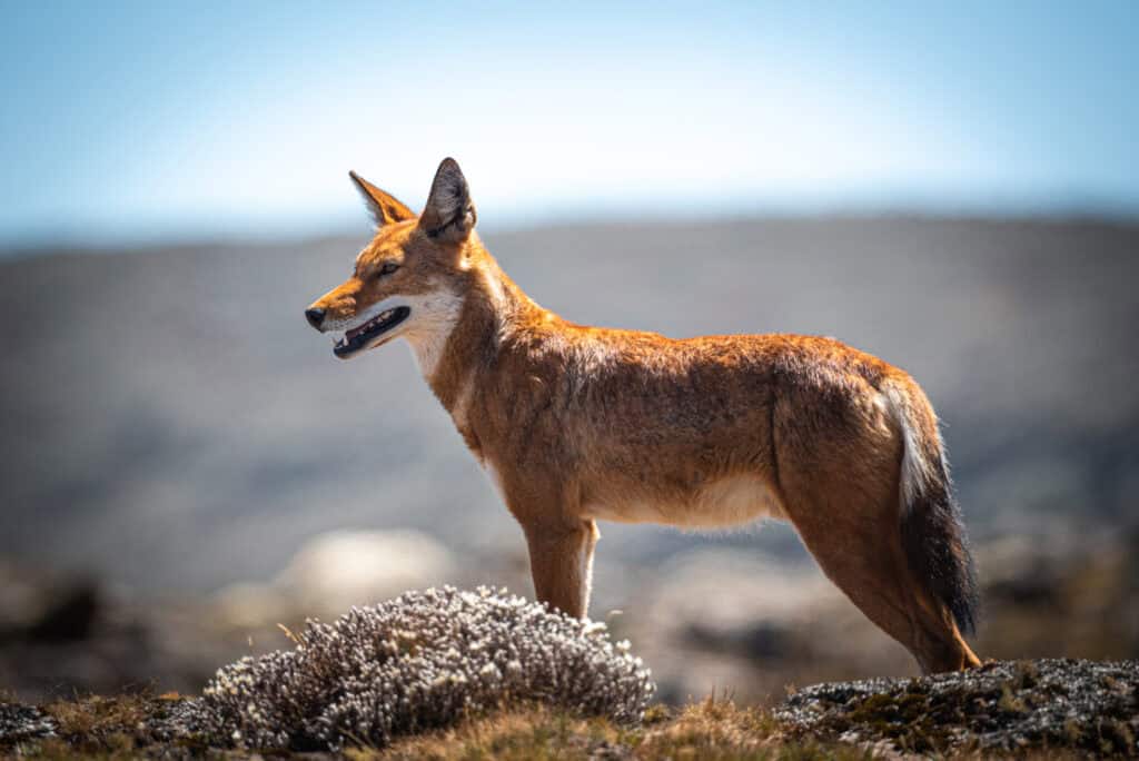Der Äthiopische Wolf ist das am stärksten gefährdete Raubtier Afrikas und kommt im Hochland von Äthiopien vor.