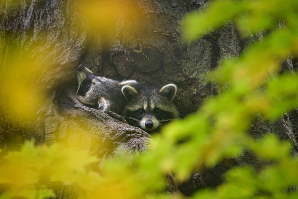 Ihre Anpassungsfähigkeit geht über die Nahrungssuche hinaus; Waschbären halten sich häufig auf Dachböden, in Schuppen und sogar in der Kanalisation auf und nutzen die verfügbaren städtischen Strukturen als Unterschlupf.