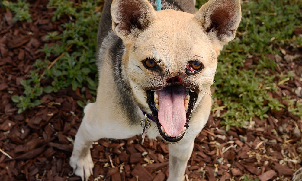 Die Besitzerin und ihr Ehemann retteten Toby aus einer Mülltonne, als er noch ein kleiner Welpe war.
