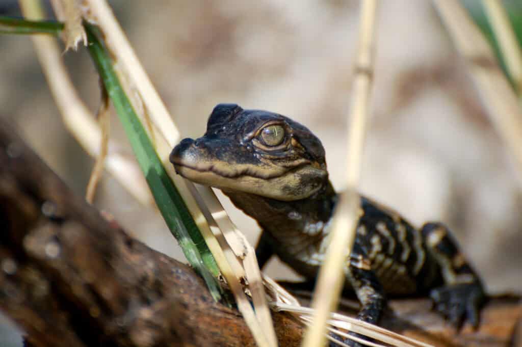 Alligatorschlüpflinge sind winzig, gestreift und überraschend niedlich, wenn sie sich im Wasser zurechtfinden.