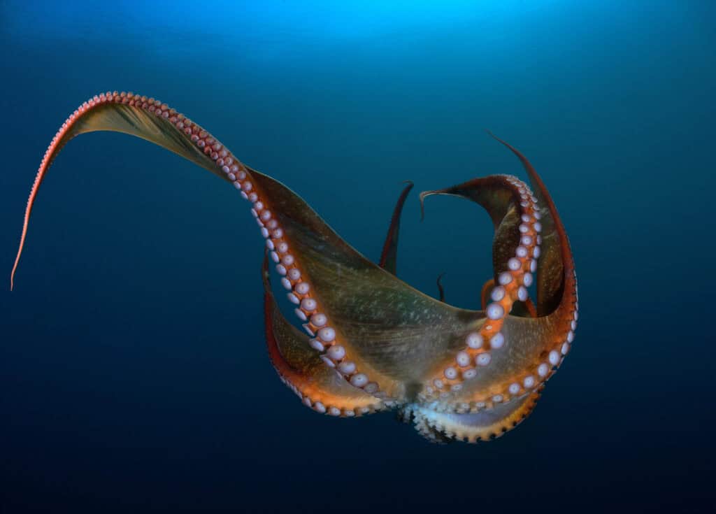Die Tentakel des Oktopus sind mit hochsensiblen Saugnäpfen ausgestattet, die sowohl schmecken als auch fühlen können.