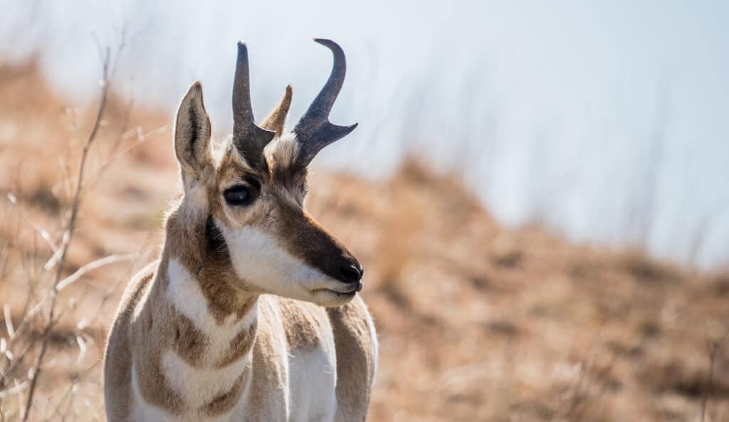 Die großen Augen des Pronghorns bieten ein ausgezeichnetes Sehvermögen, das es ihm ermöglicht, Raubtiere schon von weitem zu erkennen.