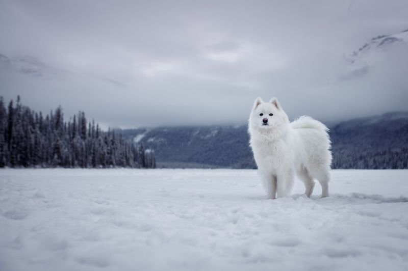 Samojeden sind für ihr typisches “Sammy-Lächeln”, ihr freundliches Wesen und ihr flauschiges weißes Fell bekannt.