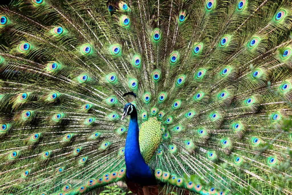 Der Pfau ist mit seinen schillernden Federn ein Symbol für Schönheit und Stolz im Tierreich.