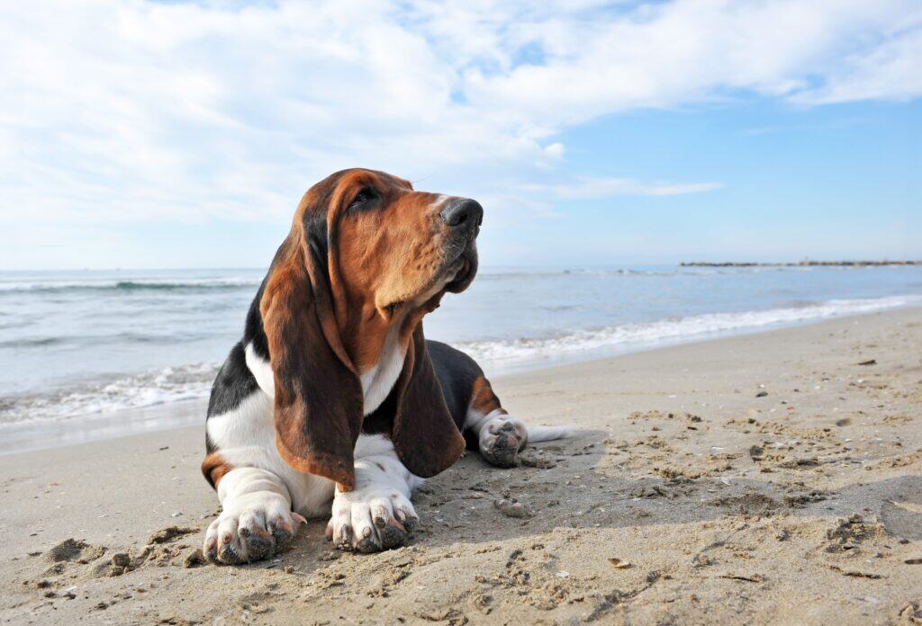 Der Basset Hound mit seinen charakteristischen Hängeohren und seinem seelenvollen Blick verkörpert den Inbegriff des entspannten Hundes.